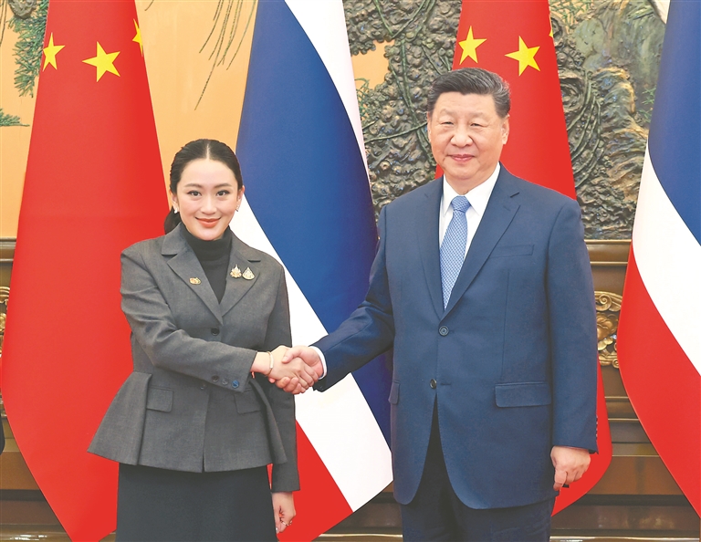 新华社北京2月6日电(记者董雪 邵艺博)2月6日上午,国家主席习近平在北京人民大会堂会见来华进行正式访问的泰国总理佩通坦。