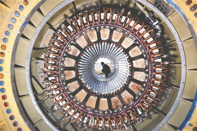 哈电电机优质高效完成生产任务。 本报记者 郭俊峰摄