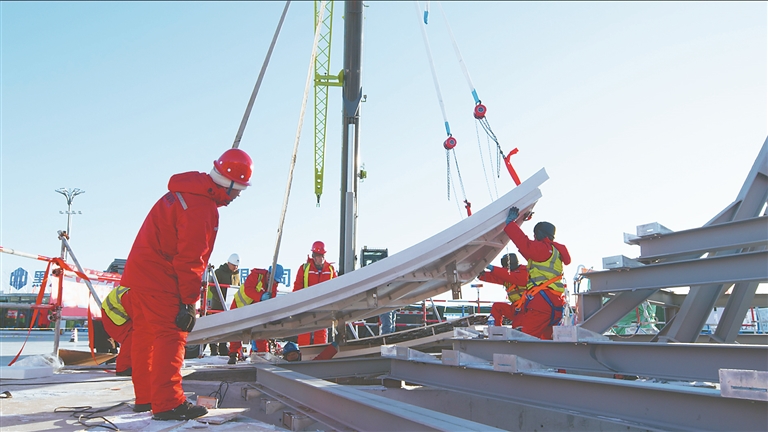 从2024年10月19日第1批材料进场,到12月19日火炬塔主体完美呈现在冰雪大世界,仅用60天时间。