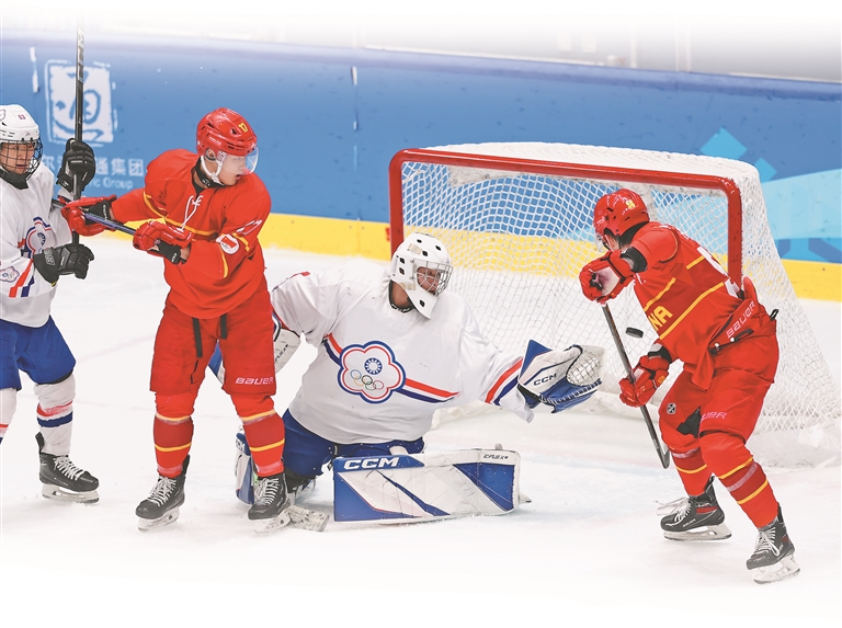 11日,哈尔滨第九届亚冬会男子冰球迎来1/4决赛。在晚8时开始的比赛中,中国队对阵中国台北队,经过激烈比拼,中国队7比2战胜中国台北队,晋级四强。