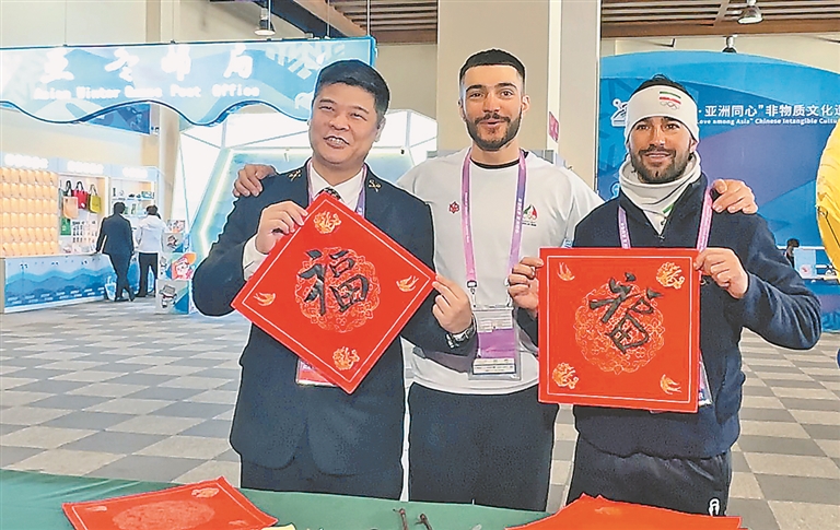 充满中国非遗元素的活动吸引了大批运动员前来体验,他们不仅得到了可爱的“中国非遗”小礼物,还亲自动手尝试制作。“本届亚冬会上获得自由式滑雪空中技巧金牌的徐梦桃刚刚来过,我帮她在葫芦上烙画了‘桃子’二字。”省级烙画葫芦传承人王猛说:“在元宵节这天将非遗展示设置在亚冬会运动员村,这太有意义了,可以让世界各地更多的人了解中国文化,展示我国深厚的文化内涵和独特魅力。”