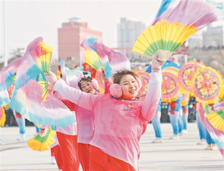 图①:鸡西举行了2025年元宵节秧歌展演花车巡游活动,整个城市沉浸在浓厚的节日氛围中,市民纷纷走出家门涌向街头巷尾,共同见证这场盛大的民俗文化盛宴。