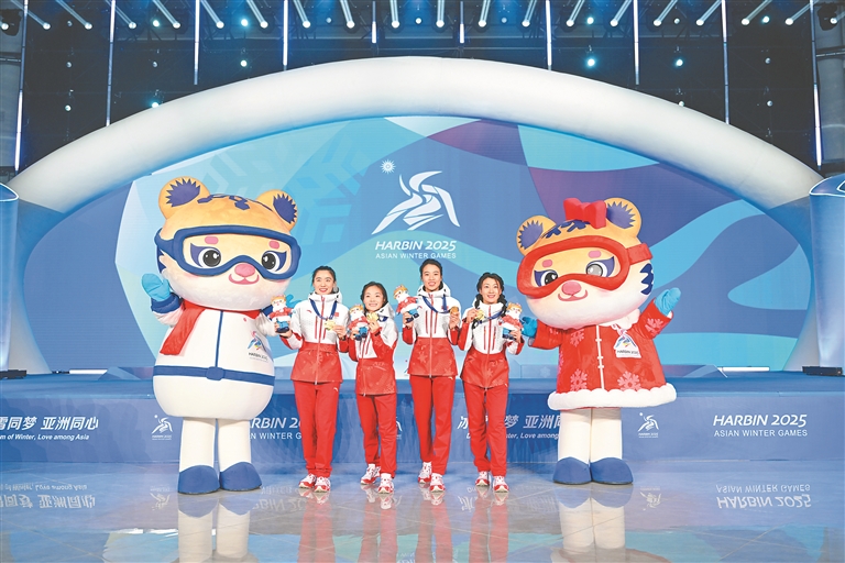 据新华社哈尔滨2月13日电(记者王恒志 乐文婉)哈尔滨亚冬会13日产生六金,中国队夺得冬季两项女子4×6公里接力金牌,金牌总数升至32枚,追平哈萨克斯坦队在2011年阿斯塔纳-阿拉木图亚冬会创下的单届金牌数纪录。