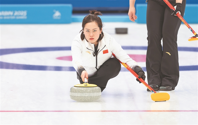女子冰壶循环赛第14轮中国对战日本。 本报记者 张春雷摄