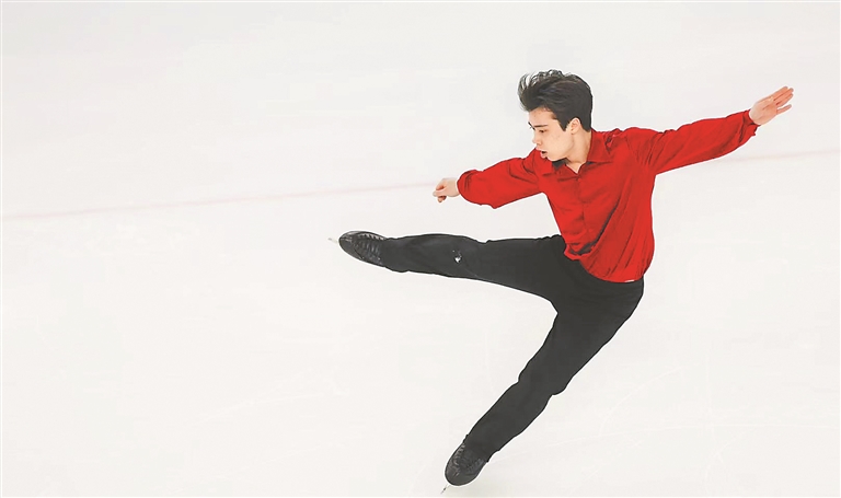 中国选手戴大卫在男子单人滑自由滑比赛中。本报记者 张澍摄