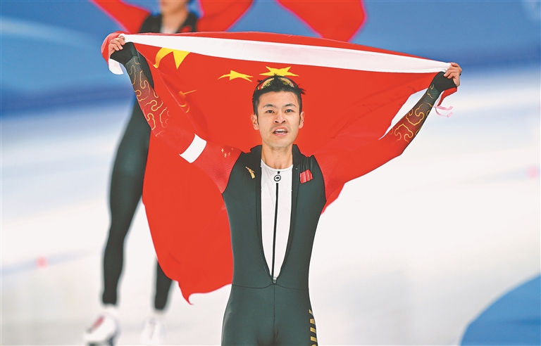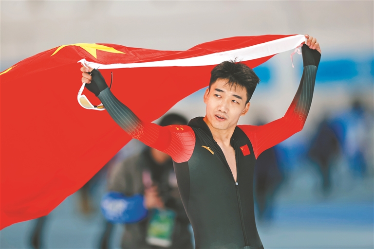 速度滑冰100米赛场上,高亭宇以9秒35的成绩打破亚洲纪录,斩获金牌。本报记者 郭俊峰摄