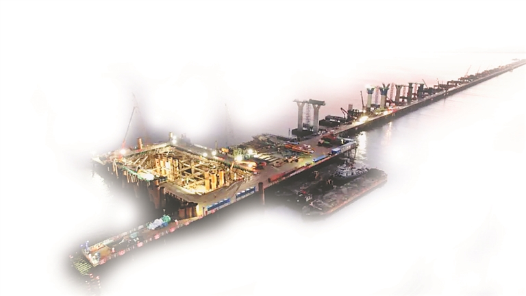 哈尔滨都市圈环线北环永源至双井段工程项目松花江特大桥施工现场。