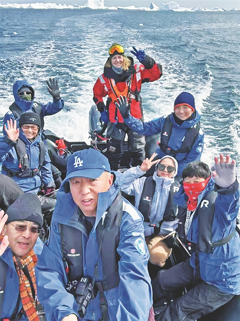 这次南极旅途中,最令郑雪松难忘的时刻,是当他和游客们分批乘坐冲锋舟终于登陆南极大陆的情景。