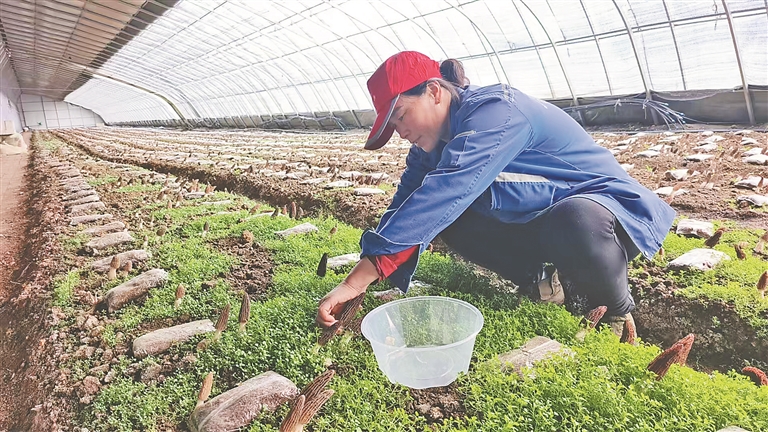 春寒料峭,牡丹江市阳明区唐樱园生态农场二期项目的6个棚室内一派生机盎然,经过3个月的精心培育,一朵朵形似羊肚的珍稀菌菇破土而出,为市民餐桌增添了一抹“春日鲜味”。