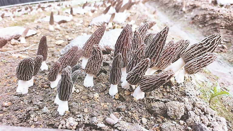 本次试种的“六妹”与“七妹”是羊肚菌中的优质品种,前者菌盖深褐色、肉质厚实,后者色泽浅棕、上市更早,当前鲜菌亩产可达500公斤-600公斤,按市场价每公斤200元计算,亩产值突破10万元,经济效益远超传统作物。新鲜采摘的羊肚菌通过冷链直供本地商超、高端餐饮,部分经烘干后销往京津冀地区,成为消费者追捧的“滋补佳品”。