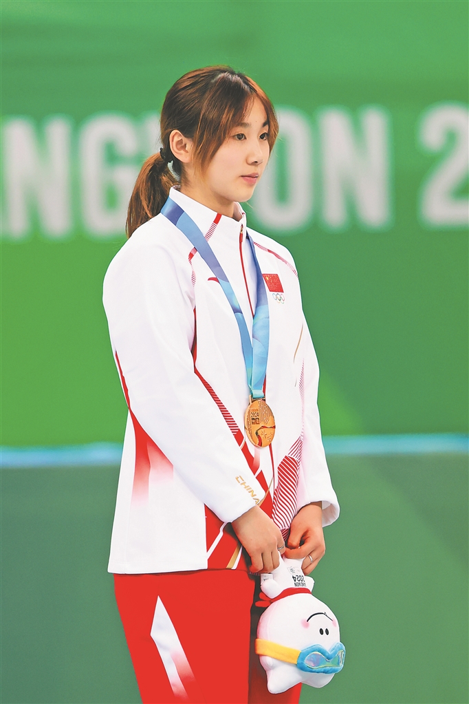 杨婧茹在江原道冬青奥会领奖台上。资料片