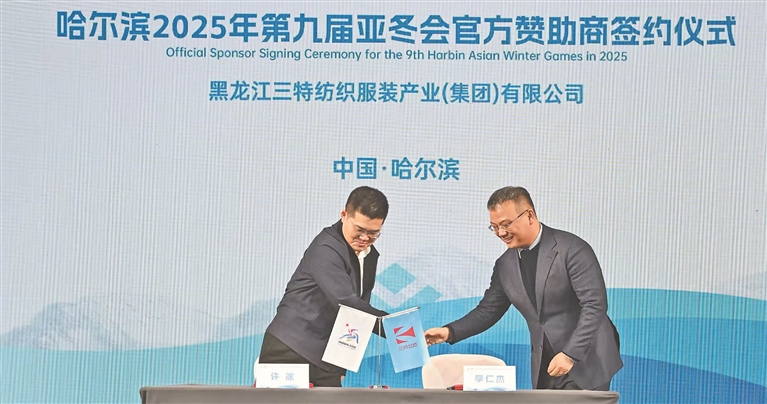 近年来,绥化市大力优化营商环境,全力支持产业项目建设与发展,吸引三特集团将企业从沿海搬迁到海伦市。海伦市积极引导三特集团转变思维,紧盯冰雪经济产业发展变化,迅速组建专项筹备团队,提前布局,深入研究亚冬会所需服装品类。2024年8月,三特集团与亚冬会组委会签订官方赞助商赞助协议,赞助“三特北派”品牌服装共计6万余件套。