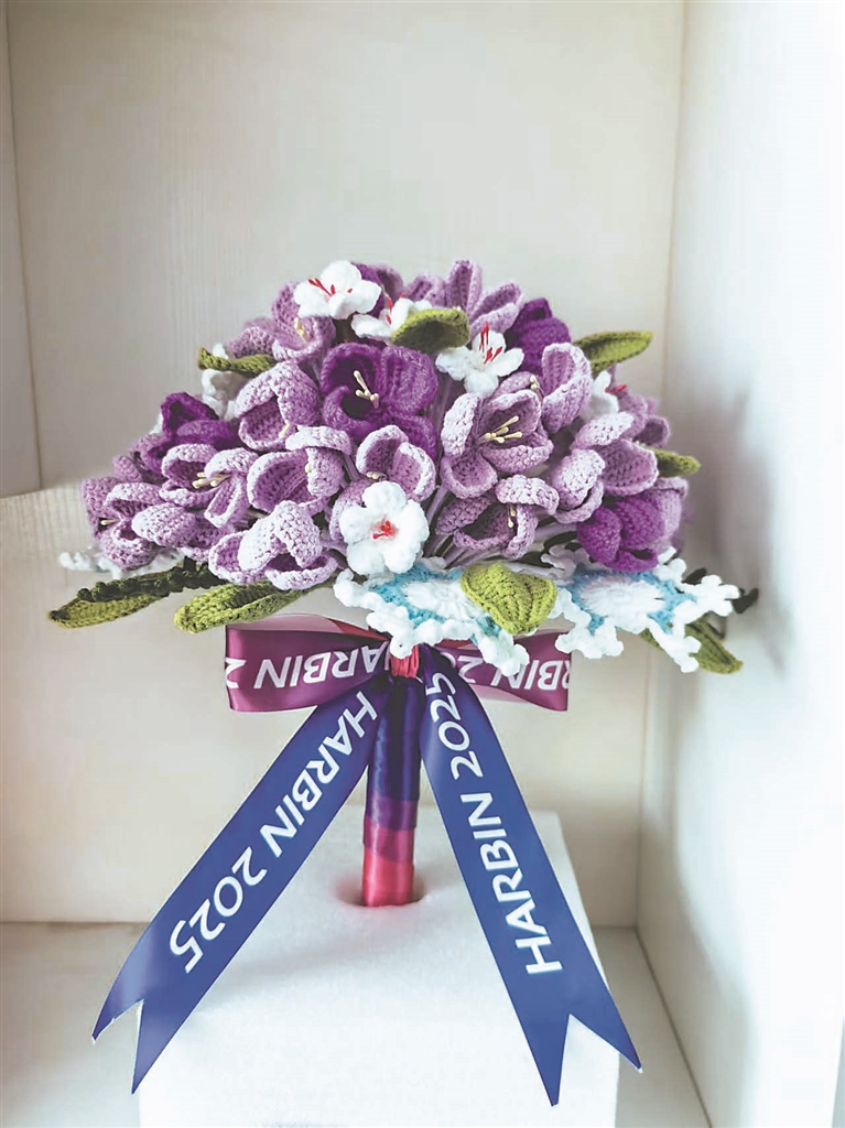 “看,我们的花……”2月7日晚,当第九届亚洲冬季运动会开幕式上出现以紫色为主色调的花束特写时,电视屏幕前,海伦市海伦镇通达社区党总支书记、居委会主任贾晓玲喊道。开幕式上,儿童和大学生手持的236束花束都是由海伦市通达社区的巧手女工们精心编织的。除了花束,用于盛放奖牌的手工藤编托盘也出自她们的巧手。当运动员们手捧奖杯站在领奖台上,这款独特的托盘成为他们荣耀时刻的别致衬托。