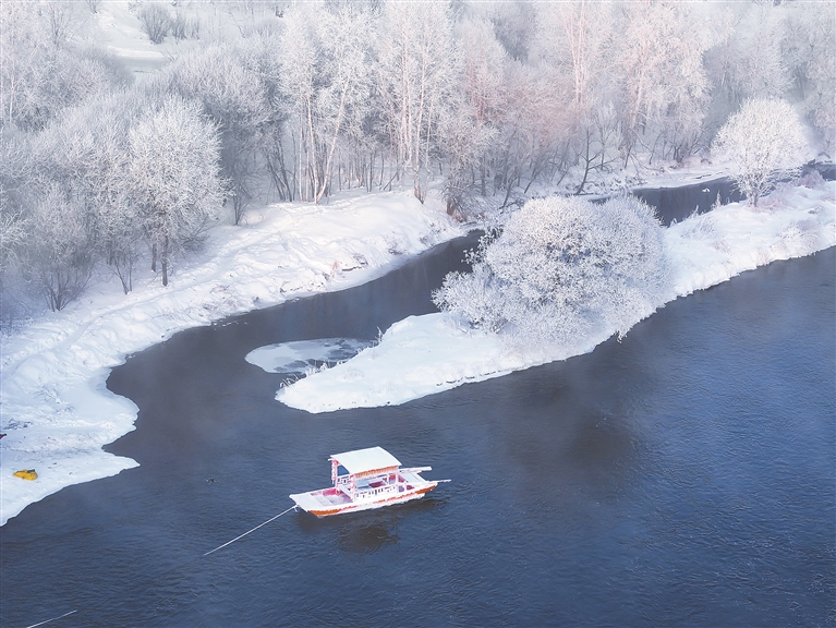 逊克大平台雾凇风景区位于黑河市逊克县东南部山区克林乡境内。由于附近有水电站,即便在冬日库尔滨河也流淌几十里不结冻,水蒸气遇冷,形成了岸上成片的雾凇奇景。从上一年的12月至次年3月,演绎着长达4个月的冰雪奇观。