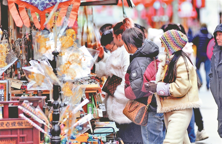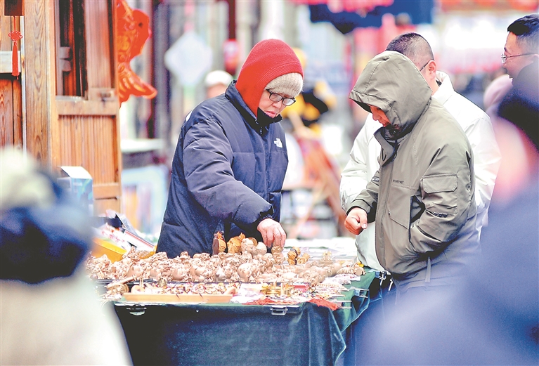 3月1日,农历二月初二。当天,哈尔滨市道外区中华巴洛克历史文化街区举办了舞龙、扭秧歌表演,现场锣鼓喧天,喜庆又热闹,许多市民、游客上前观看,并用手机记录下精彩瞬间。街区里设置了民俗工艺品展示摊区,糖画、木雕、葫芦画等各种手工艺品琳琅满目、应有尽有,人们纷纷驻足观赏、购买。