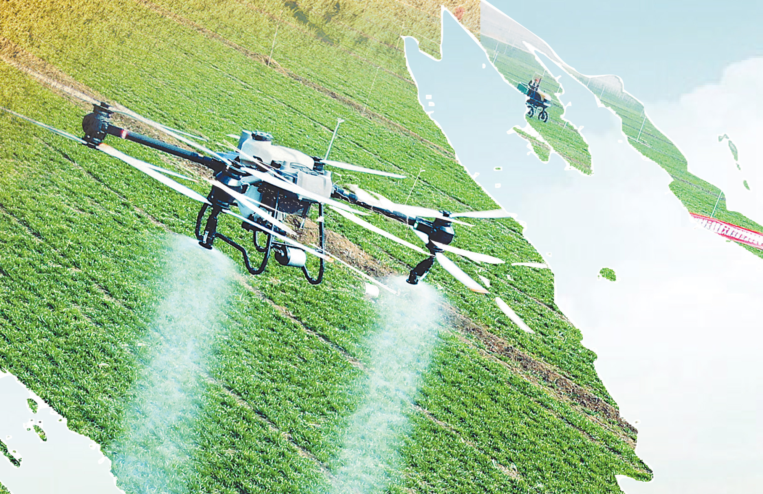 2024年3月14日,在山东青岛市即墨区蓝村街道绿色增粮示范区内,植保无人机在进行小麦叶面肥一喷多防作业。新华社记者 李紫恒摄