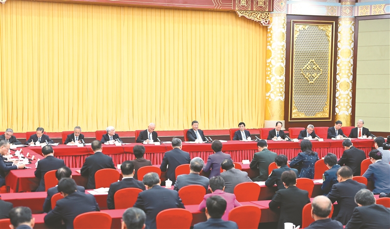 中共中央政治局常委、全国政协主席王沪宁,中共中央政治局常委、中央办公厅主任蔡奇参加看望和讨论。