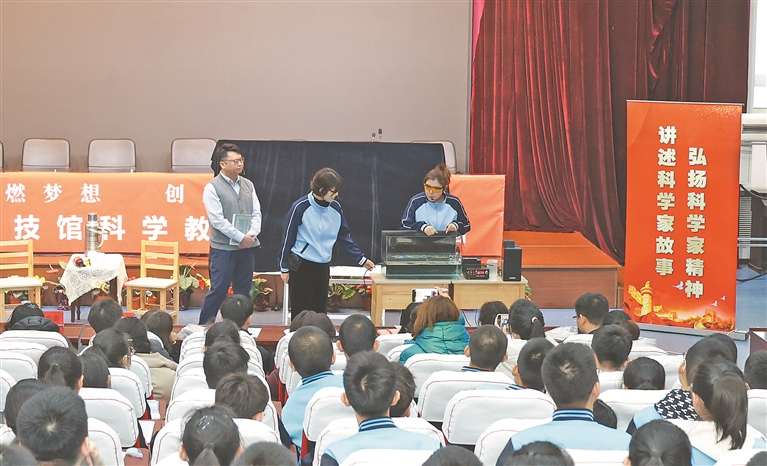 本报讯(郑文君 记者彭溢)3月13日,省科技馆以“科技点燃梦想 创新启航未来”为主题,走进哈尔滨市第四十九中学开展科学教育活动,将科学家精神科普剧、科学实验表演、竞赛辅导、科普大篷车等深受青少年欢迎的活动送入课堂,为200名师生带来了一场沉浸式的科学盛宴。