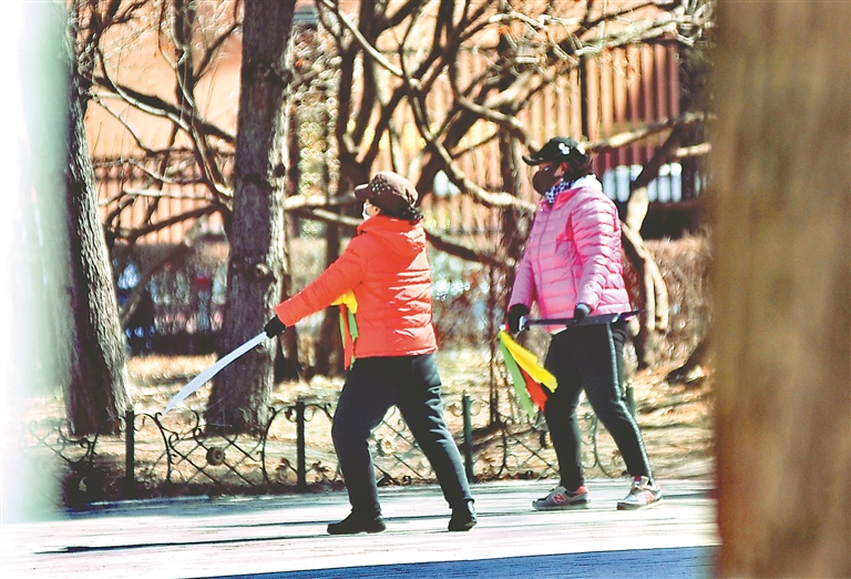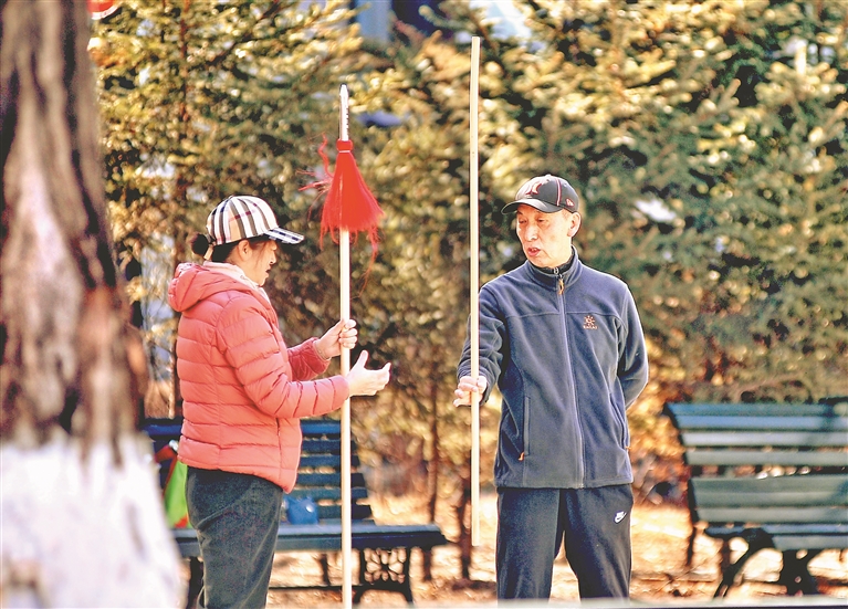 近日,哈尔滨市道里区斯大林公园内的一处小广场上,几名老年“武林高手”正在传授、切磋技艺。他们或练习长枪,或耍起双刀,或对练八卦掌,为江畔增添了一道风景,吸引了许多游人驻足观看。一位老人告诉记者,他们都是武术爱好者,通过练习武术套路,强身健体。