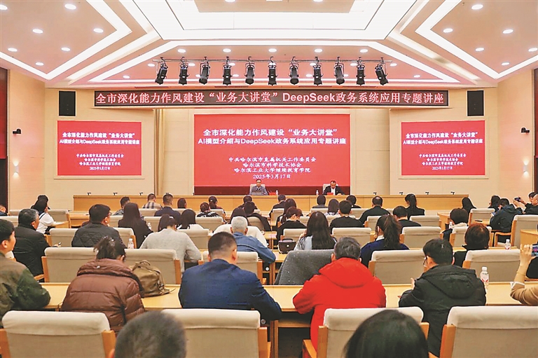 本报讯(记者赵一诺)为加快提升机关干部数字素养与智能技术应用能力,助力政务工作智能化转型升级,近日,哈尔滨市直机关工委、哈尔滨市科协、哈尔滨工业大学继续教育学院联合举办哈尔滨市深化能力作风建设“业务大讲堂”——AI模型介绍与DeepSeek政务系统应用专题讲座。哈尔滨市直机关和部分区县共200余名机关干部参加学习。