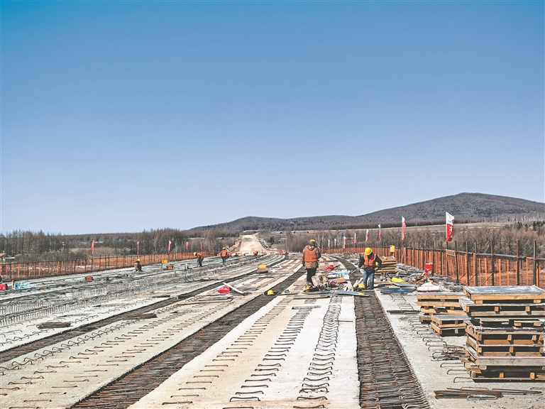 日前,在G1111鹤哈高速苔青至伊春段梅花河大桥的施工现场,数十名工人正热火朝天地进行桥梁的钢构件加工和安装工作。鹤哈高速苔伊项目3月16日正式复工复产,为完善龙江高速公路网络按下“加速键”。