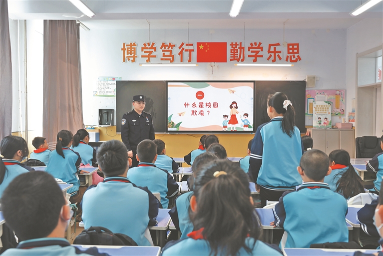 当天上午,通江路边境派出所民警刘英明结合学生的心理和生理特点,用生动活泼的方式和浅显易懂的语言,就交通安全、防校园霸凌、防火用电安全、防电信诈骗等方面,为同学们作了专题讲解,把安全知识送到每一位学生身边,不断提高学生的自我保护能力。