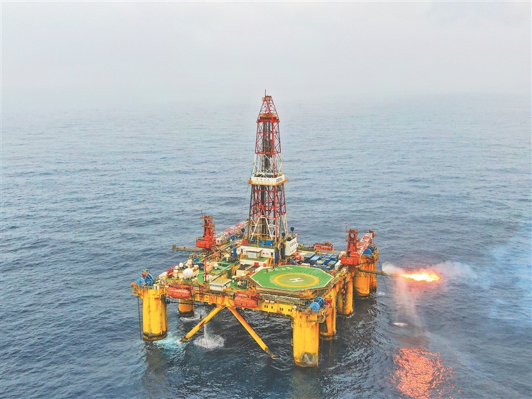 “南海二号”钻井平台在惠州19-6油田海域进行钻探作业。