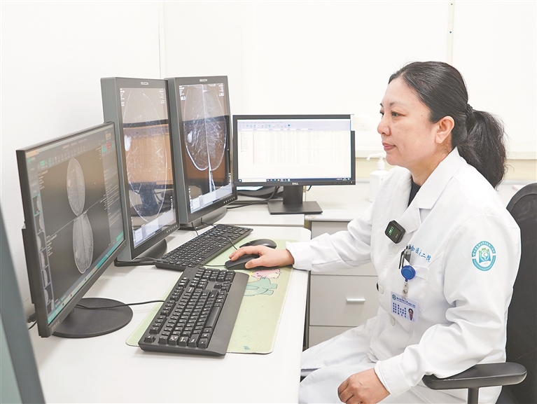 哈医大二院超声医学科主任冷晓萍介绍:“最新引入的人工智能超声导航系统是医生的得力助手,能够实时动态剖析甲状腺及乳腺的超声视频图像,达成毫米级的病灶捕捉,智能化地完成病灶定位、特征分析、诊断决策以及报告生成,医生在检查过程中能同步获取人工智能的精准提示,减少漏诊及误诊。”同时,通过人工智能技术与医学影像的深度融合赋能乳腺疾病精准诊断,运用多模态融合,联动超声、MRI构建“乳腺病变图谱”,预测肿瘤演进,并利用人工智能标注的十万级标准化病例库,挖掘病灶特征与预后关联,推动个体化治疗。