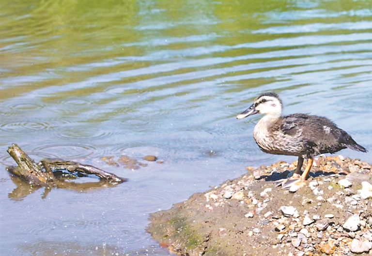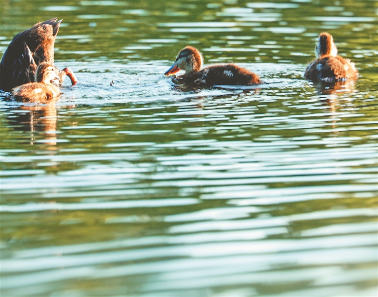 神奇的是不知道这三只小野鸭咋来的。消息不胫而走,游客们开始纷纷赶到东北湖,围观湖上的小野鸭,城里人能这么近距离观赏野鸭子还是头一回。