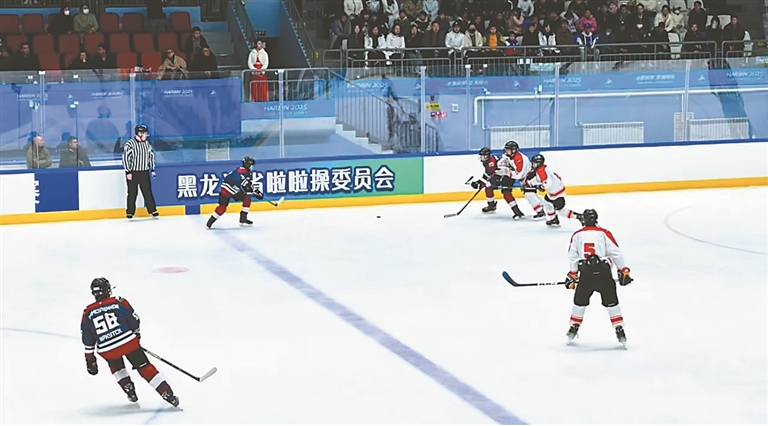 据了解,本项赛事由哈尔滨市体育局指导,南岗区人民政府主办,哈尔滨市对外体育交流合作协会、北京三爱天逐体育发展有限公司哈尔滨分公司承办。比赛汇聚了中俄两国U11和U14两个组别的冰球劲旅,他们将在为期3天的赛程里,共计进行32场比赛,向着各自组别的冠军荣誉发起冲击。赛事不仅吸引了众多冰球爱好者的目光,更有不少冰城市民亲临现场观赛,近距离感受冰雪运动名城的独特魅力。