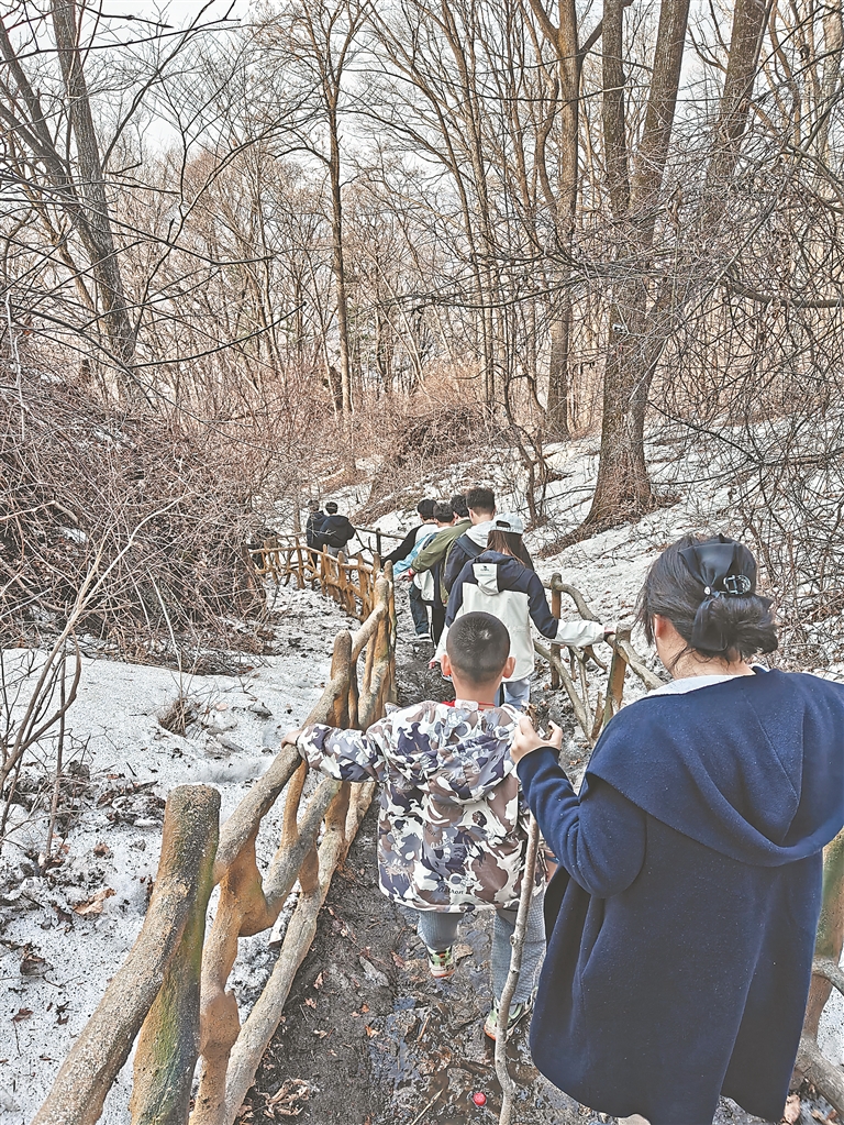 清明假期首日,哈尔滨宾县香炉山国家森林公园内游人如织。随着山间冰雪悄然消融,沉寂一冬的山林焕发出早春生机,吸引众多市民轻装简行,来此开启一日“微度假”。林间新设了休憩区,不少游客捧杯暖饮静赏半冰半水的“溪水十八弯”景致。 本报记者 李美时摄