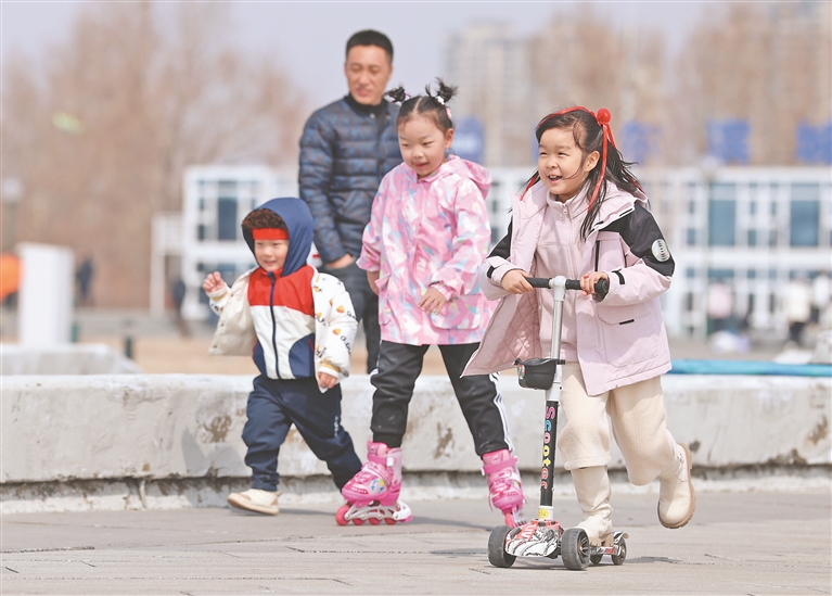 4日,哈尔滨大剧院湿地公园里到处是踏青游玩的人们,孩子追逐嬉戏,享受美好春光。本报记者 韩东贤摄