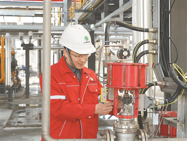 站在项目现场远眺,银灰色的储罐群在阳光下熠熠生辉,纵横交错的工艺管线编织成精密网络,与建设初期“荒草丛生”的景象形成了鲜明对比。2022年春天,首批建设者面对的是盐碱荒地,中晟国金(大庆)能源科技有限公司总经理赵志龙仍记得当时的场景:“我们2022年规划建设,2023年春季开工建设,当年完成了11个单体建筑工程的施工,2024年开展验收,动态设备调试完成。高峰期时每天400余名建设者昼夜奋战。”