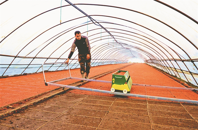 “先进机械是水稻播种加快速度和提高标准的关键。今年,我利用电动播种、覆土机进行水稻播种,遥控器一按就自动播种、覆土,全部都是自动化,两个人几个小时就能播完一栋大棚,既实现了播种标准化,又达到了节本增效的目的,现在种地真是越来越轻松了。”第五管理区种植户赵宝贵说。
