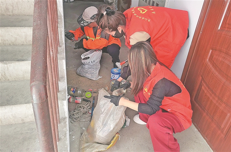 社区志愿者在清理垃圾。