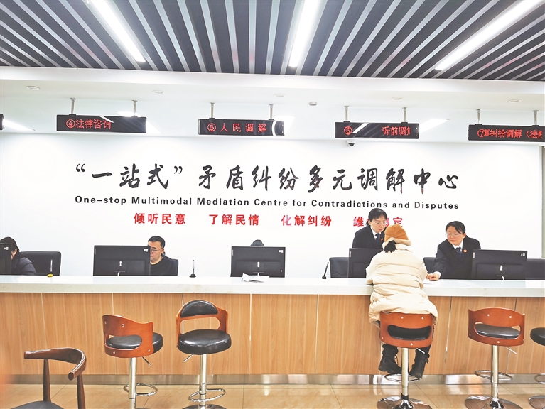 呼兰区委政法委副书记隋洋介绍,自2023年8月“三中心”运行以来,整合公安、司法行政、法院、城管、群团等27个部门,设立12个综合服务窗口和共享调解、诉调对接、心理咨询、巡回法庭等功能室,实现群众反映矛盾诉求只进一扇门、最多跑一地,形成“一平台受理、一站式服务、一张网共治、一揽子解决”机制。