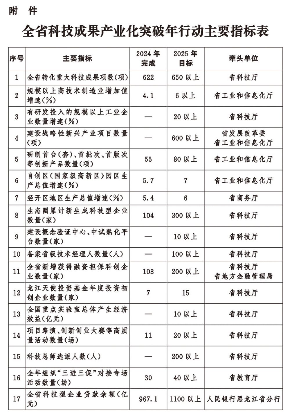 2025年,全省就地转化重大科技成果650项以上,规模以上高技术制造业增加值增速达到6%以上,有研发投入的规模以上工业企业数量增长20%以上。