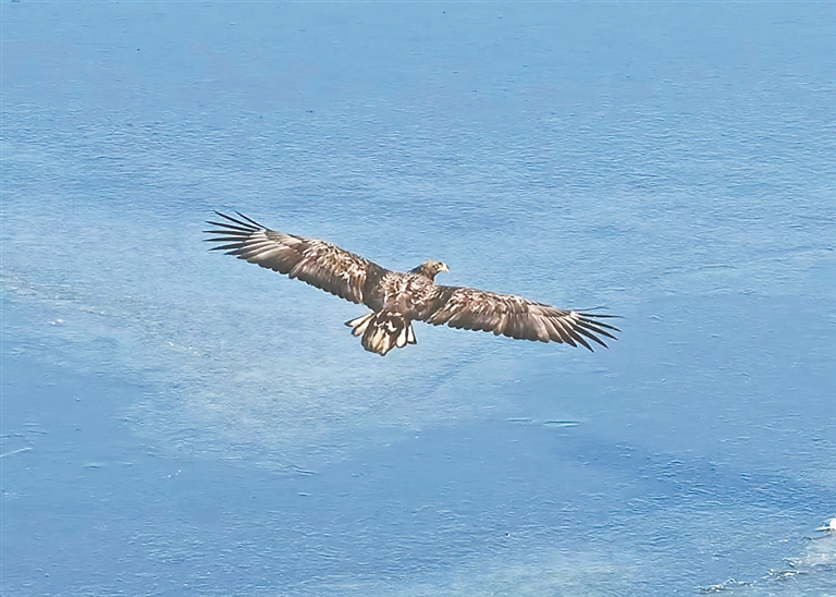 据工作人员介绍,进入春季以来累计监测到132只东方白鹳在八岔岛保护区占巢,当下已进入繁衍期开始产卵孵化。近日,在保护区附近拍摄到国家一级保护动物白尾海雕,其翼展长达2米,时而振翅高飞,时而俯首觅食,尽展非凡的英姿与力量。