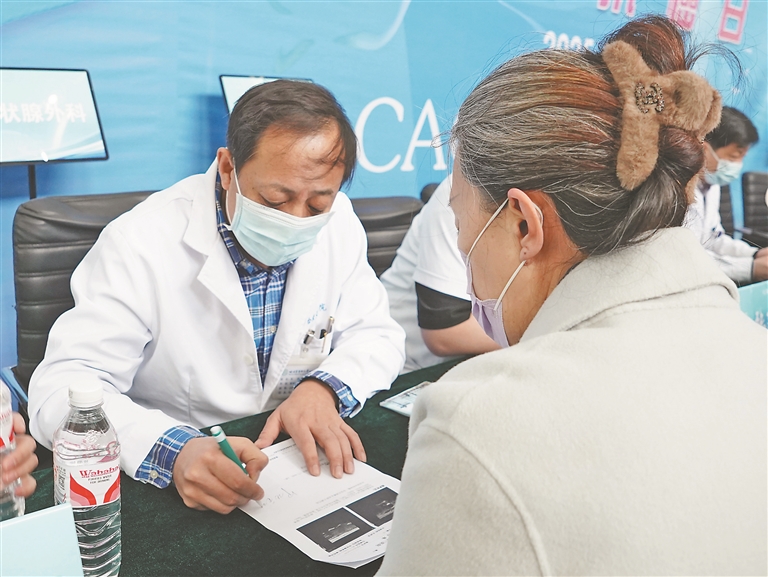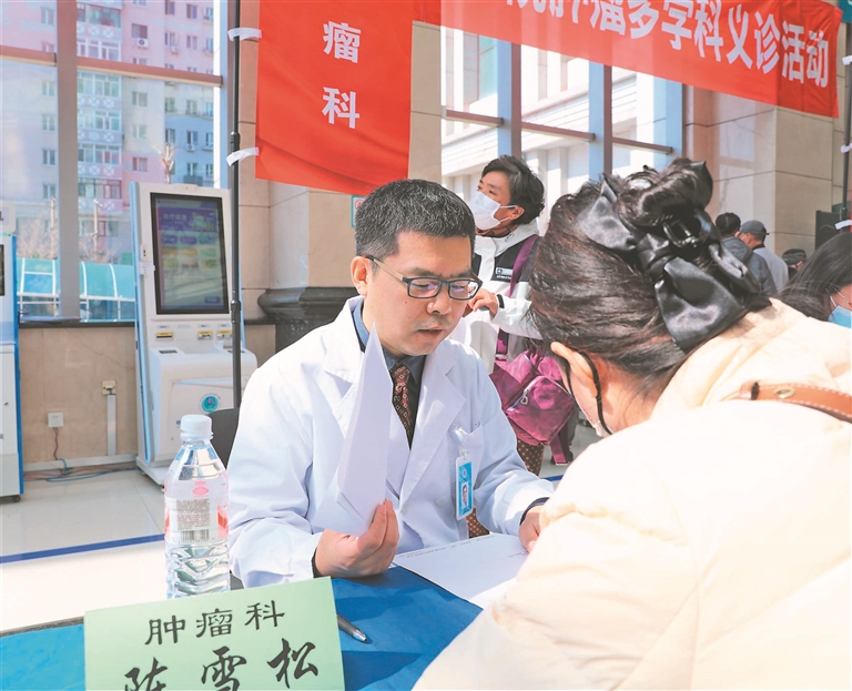 活动中,由哈医大肿瘤医院牵头,联动黑龙江省肿瘤专科联盟38家医联体单位,在全省开展联动义诊。哈医大肿瘤医院义诊现场,前来问诊的市民络绎不绝。义诊咨询、科普宣讲、医患互动……医院近40个科室的权威专家热情地为市民提供专业周到的诊疗服务。
