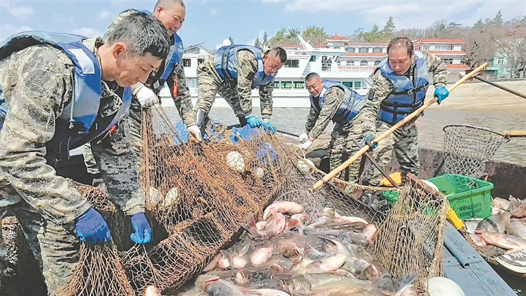 捕鱼现场。 本报记者 张雪地摄
