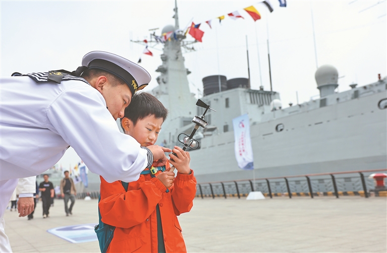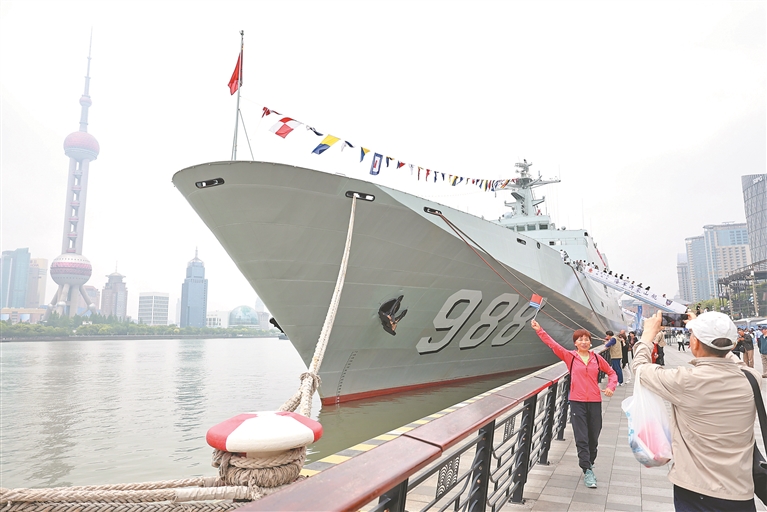 4月22日,在人民海军成立76周年之际,驻沪海军部队联合上海市双拥办共同组织以“上海·海上”为主题的舰艇开放活动。两艘海军现役主战舰艇综合登陆舰沂蒙山舰和导弹驱逐舰西安舰靠泊上海港国际客运中心码头,市民游客不仅能够登舰参观,还在现场观看和参与文艺表演和国防教育科普活动。