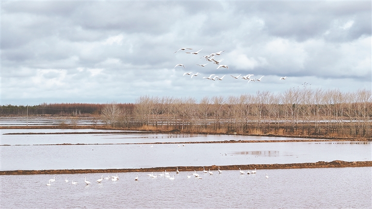 近年来,北大荒集团建三江分公司二道河农场有限公司种植户积极推进格田改造,每个格田面积达10-15亩。开阔水面与充足空间,正好契合候鸟长途飞行中寻找中转休憩地的需求。本报记者 刘畅采写 李庆海摄