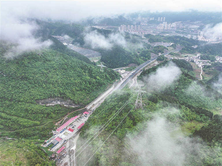 这是4月24日拍摄的渝湘复线高速公路彭水隧道贯通仪式现场(无人机照片)。4月24日,随着最后一声爆破轰鸣,历经1500余天,由中铁十二局承建的渝湘复线高速公路全线最长隧道——彭水隧道双洞顺利贯通。