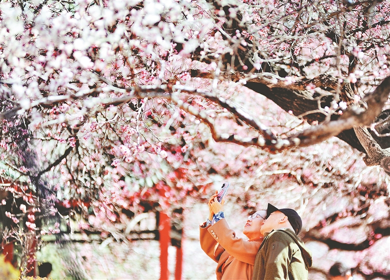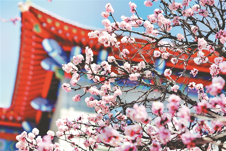 近日,哈尔滨工程大学杏花长廊里,粉色的杏花竞相绽放,吸引了许多市民、游客前来打卡。大学生们也利用课余时间穿上靓丽的服饰来到这里拍照。这处杏花长廊长近80米,每年4月下旬至5月上旬开花,被誉为哈尔滨市春季最美风景之一,是冰城市民春季赏花的好去处。