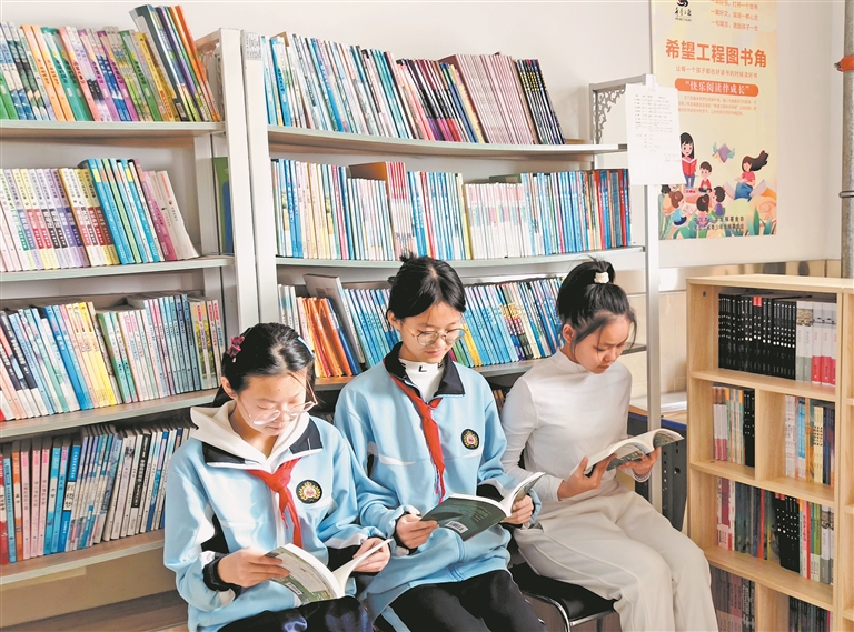 东宁市第二小学学生在希望工程图书角读书。本报记者 郭俊峰摄