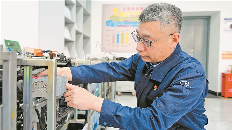 他提出现场可拆卸大型电器配件故障处理“1小时完成率”理念。以客车DC600V逆变器设备为例,以往处理故障需要5人到6人协作,每次更换配件都要反复拆装重达100多斤的设备,耗费数小时还不一定达到出库质量标准。为解决这一难题,他积极研制“逆变器检修台”,将检修合格的设备整机运到现场更换,使现场作业效率大幅提升,仅需3人就能在1小时内完成。从2022年到2025年,利用该检测台完成逆变器、充电机加修任务510台次,并在2023年将该成果推广应用。此外,他针对客车安全监控装置、集便器、TCDS等电器设备开展了大量检修试验工作,综合生产效率平均提高70%以上。多年来,他处理客车装置疑难故障500余起,每年为单位节约资金200万元以上,累计节约支出5000余万元。