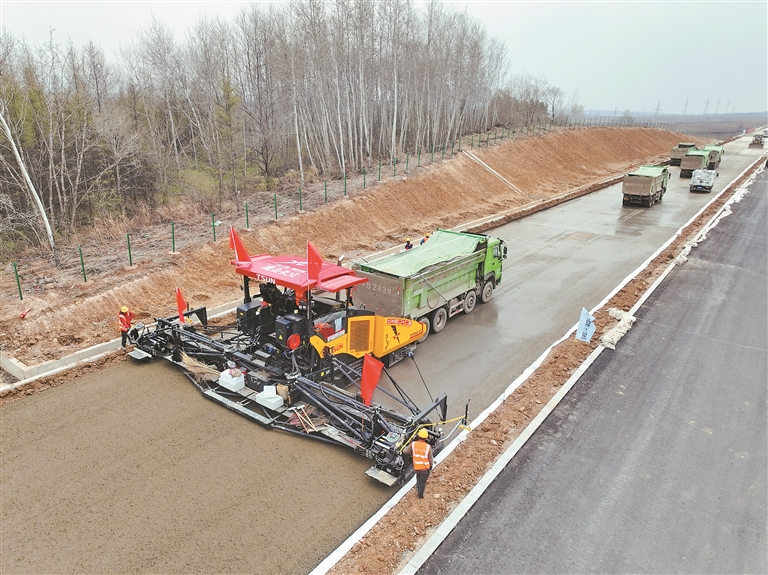 据中铁二十二局铁科高速公路项目负责人田国平介绍,此次摊铺任务由大小里程双段同步推进,投入40余台套机械设备,路面施工已按下加速键,向通车发起冲刺。