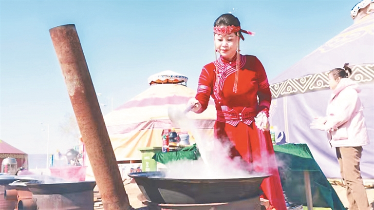 4月30日,为期6天的2025大庆连环湖开湖季暨杜尔伯特春夏文旅产品展示周活动启幕。图为现场熬制鱼汤。