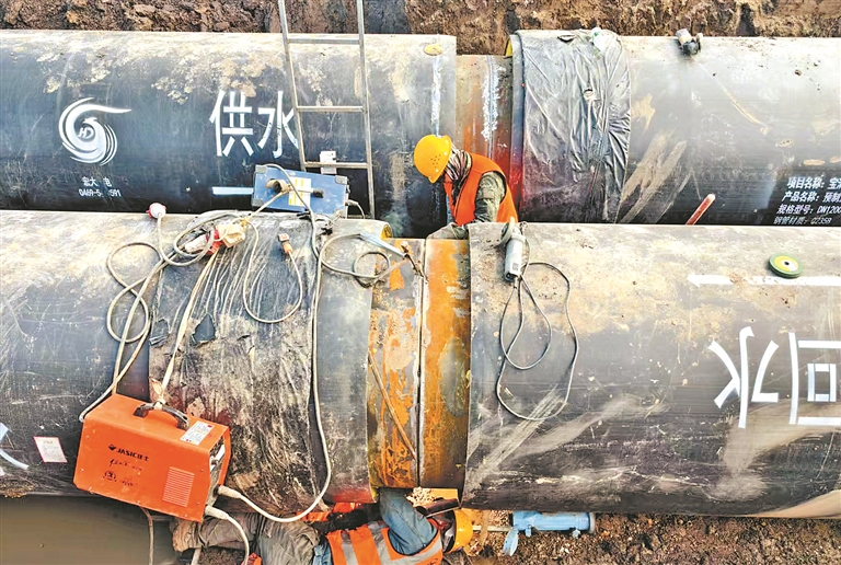 为保证项目如期竣工,施工团队科学组织,同步推进主管道的开槽下管和供热指挥中心的基建工作,实行两班制工作,设备24小时运转,确保今年10月底完工。