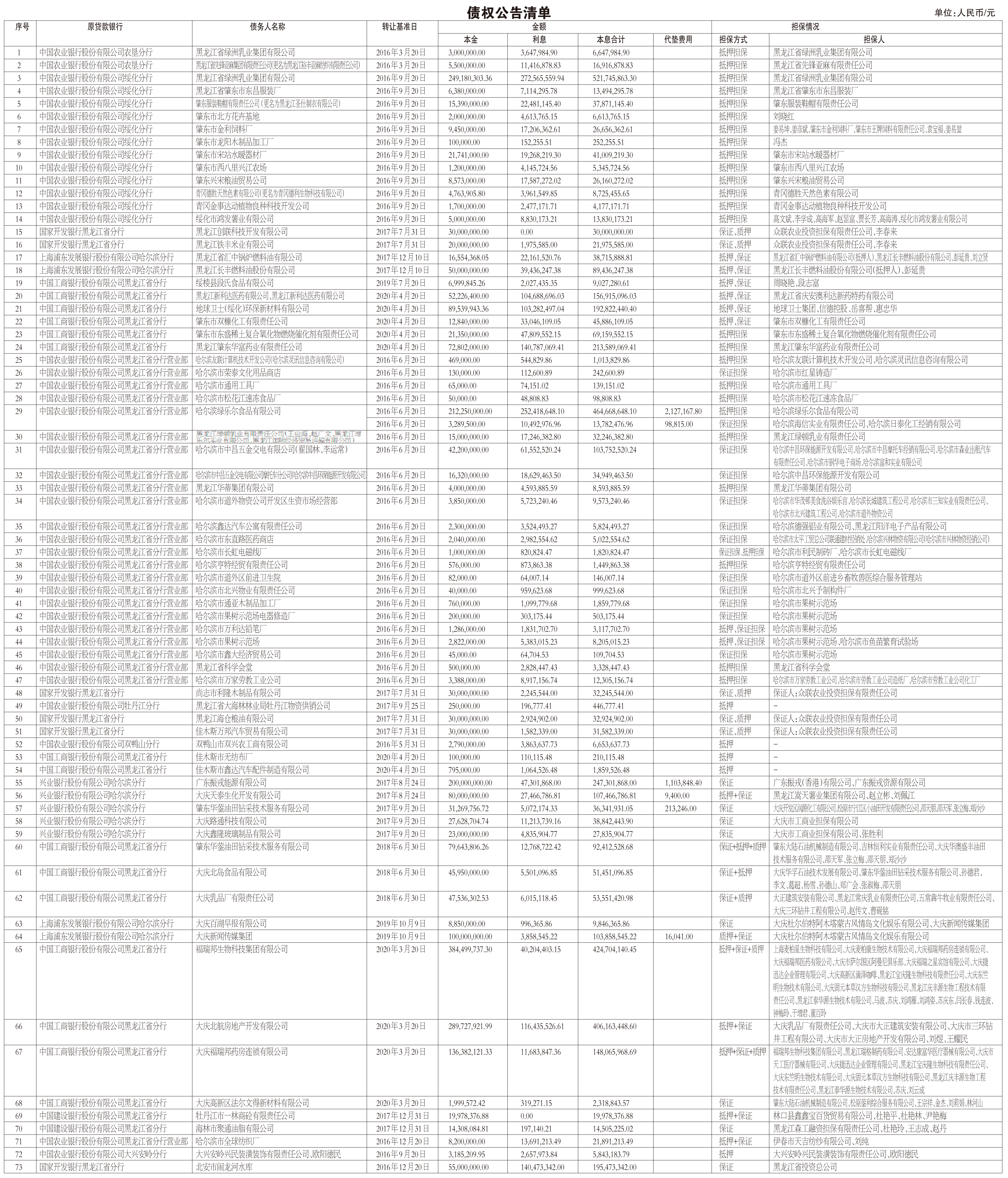 根据中国长城资产管理股份有限公司与黑龙江省内多家银行签署的相关资产转让协议,以及借款人、担保人与原债权人签署的借款合同和担保合同,原债权人(黑龙江省内各家银行:中国农业银行股份有限公司农垦分行、中国农业银行股份有限公司绥化分行、上海浦东发展银行股份有限公司哈尔滨分行、中国工商银行股份有限公司黑龙江省分行、中国农业银行股份有限公司黑龙江省分行营业部、国家开发银行黑龙江省分行、中国农业银行股份有限公司牡丹江分行、中国农业银行股份有限公司双鸭山分行、兴业银行股份有限公司哈尔滨分行、中国农业银行股份有限公司大兴安岭分行、中国建设银行股份有限公司黑龙江省分行)对借款人和担保人所享有的债权由中国长城资产管理股份有限公司黑龙江省分公司承继并享有。请债务人、担保人或其承继人立即向中国长城资产管理股份有限公司黑龙江省分公司履行还款义务或承担担保责任(若借款人、担保人因各种原因发生更名、改制、歇业、吊销营业执照或者丧失民事主体资格等情形,请相关承债主体、清算主体代为履行义务或者承担清算责任)。